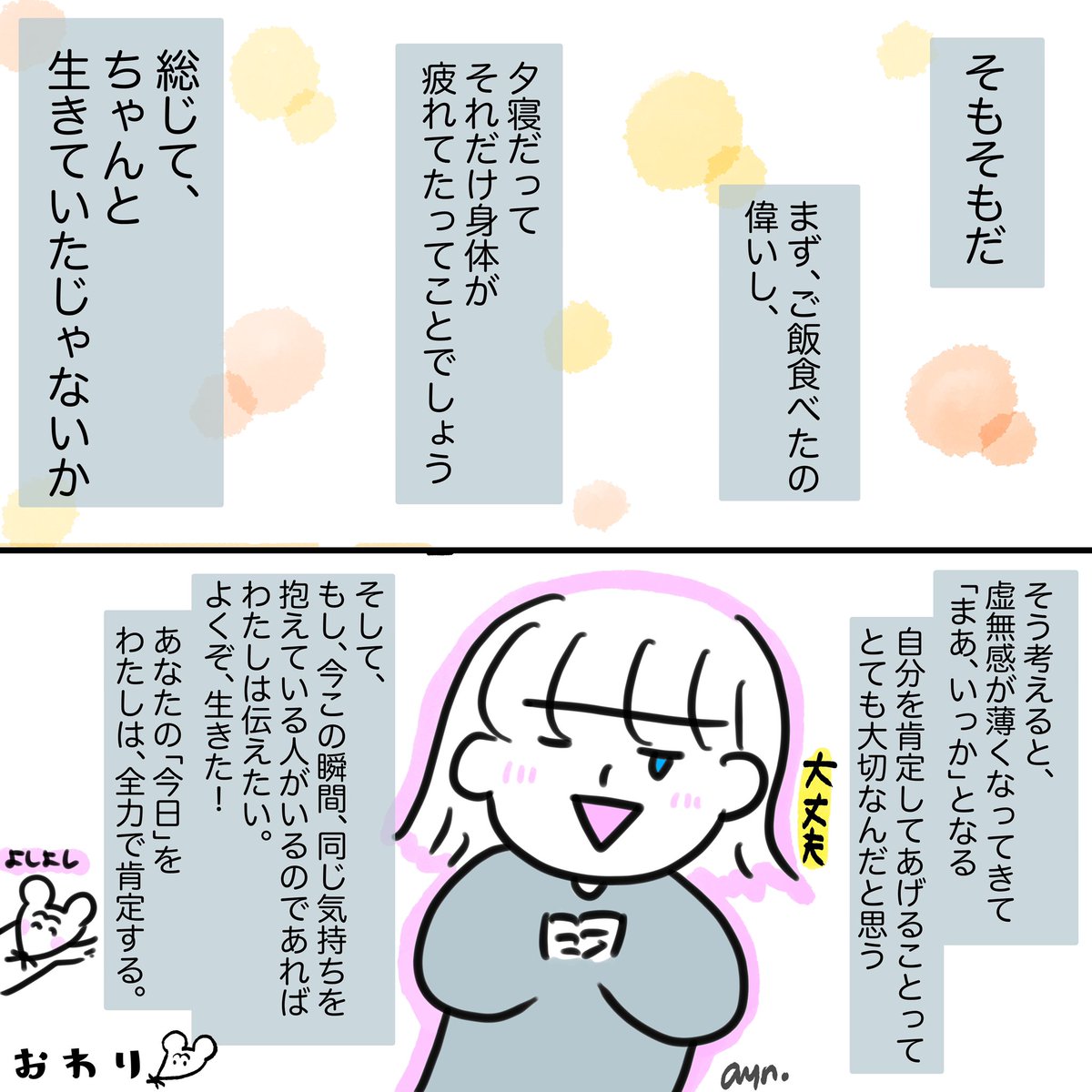 ayn @end___roll あなたは十分に頑張ってるよって話 #5分の習慣 #不定期漫画 #aynのつぶつぶつぶやき #おいどん大好きクラブ #漫画が読めるハッシュタグ https://t.co/r9JLKXZk5w