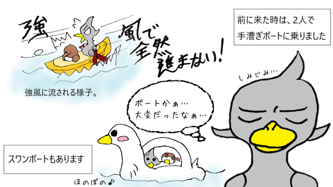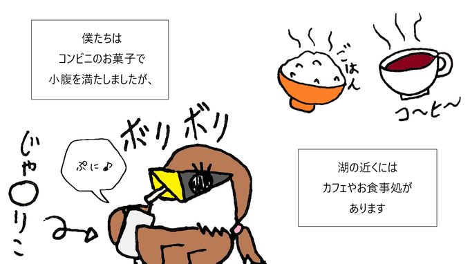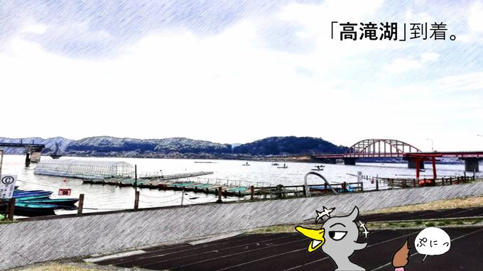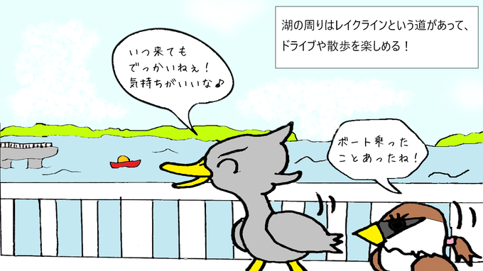 旅鳥くろまる @kuromaru_puniko 前回の危機を乗り越え、 高滝湖に到着(*‘ω‘ *) 湖の周りをお散歩していくよ! #漫画が読めるハッシュタグ #まんが #マンガ #漫画 #千葉県 #高滝湖 #旅行 #イラスト #くろまる https://t.co/cLBZkniC46
