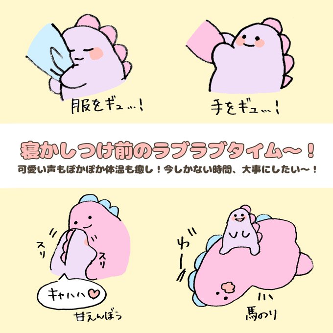 ぱに@10m🦕🎀 @panimama0325 家事する時間…って思っちゃう時もあるけど、手が離れた時に思い返して幸せな気持ちに浸れること間違いない寝かしつけの時間☺️💕 忙しくても、大事にしたいな✨ #もちもちサウルス #育児 #育児漫画 #絵日記 #漫画が読めるハッシュタグ #赤ちゃん #ベビー #1歳 #子ども https://t.co/n8Xmd2WTBx