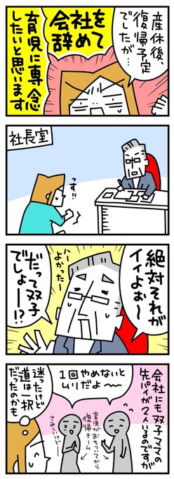 pico @picoart6 👶双子妊娠で人生変わった話👶 15/40 双子ママが多い職場でした👶👶 続く #妊娠 #双子 #男女双子 #twins #同居 #退職 #パニック障害 #育児漫画 #4コマ #4コマ漫画 #漫画 #イラスト #イラストレーター #エッセイ #イラスト好きな人と繋がりたい #絵描きさんと繫がりたい #漫画が読めるハッシュタグ https://t.co/wgx3Oz4rgI
