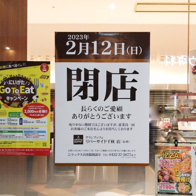 🥄グランブッフェ リバーサイド千秋店が次の日曜日で閉店に