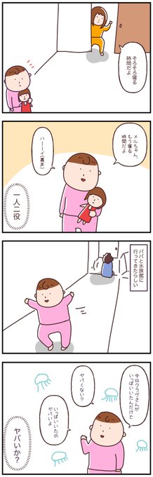 マッマ(3歳♂、1歳♀) @mama_dayo__ https://t.co/eUHCCp3Ra5 #四コマ漫画 #4コマ漫画 #web漫画 #日常漫画 #漫画 #育児絵日記 #育児漫画 #育児 #子育て #漫画が読めるハッシュタグ #おままごと #メルちゃん #就寝 #女の子 #3歳 #3歳児 #兄妹 #水族館 #くらげ #ヤバい https://t.co/4NtO7bzyET https://t.co/KrA8DxOzto