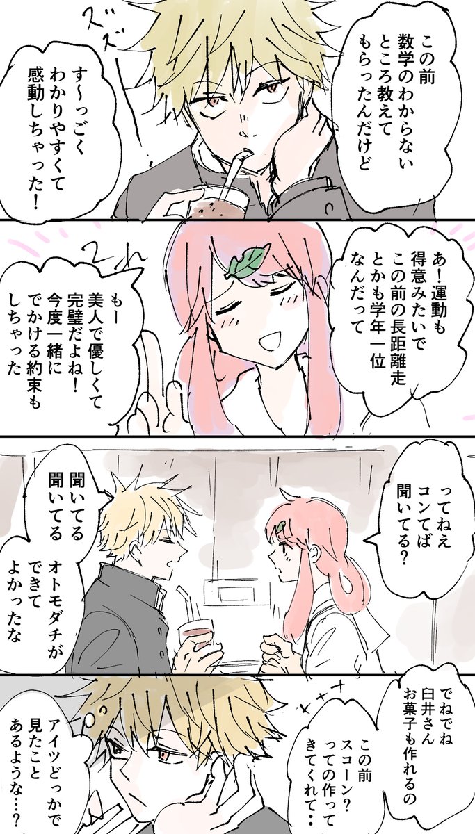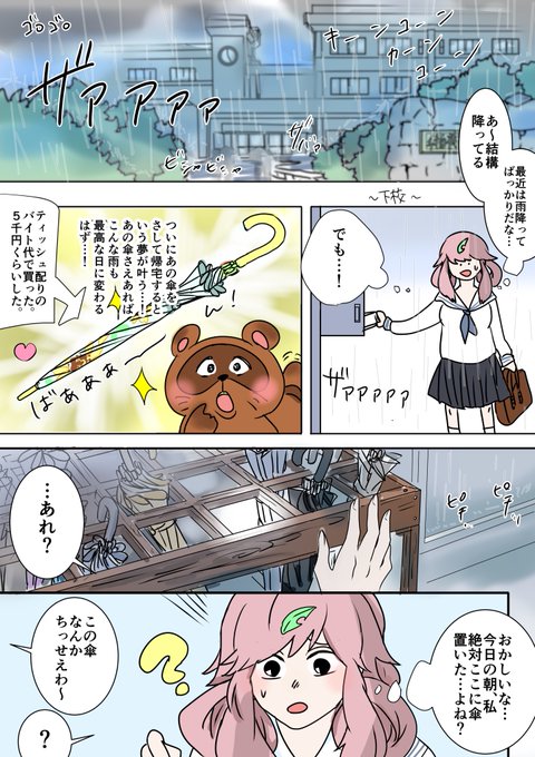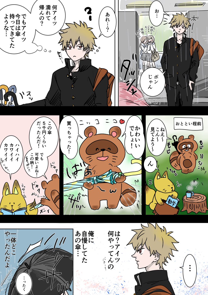 ひゃくねんびびっと@創作漫画 @100akinana タヌキとキツネが化けて高校生になる話です。 「ホンダトコンノ」 #創作漫画 #漫画が読めるハッシュタグ #漫画 『梅雨』 後編④⑤⑥ https://t.co/3kerIeK8xn