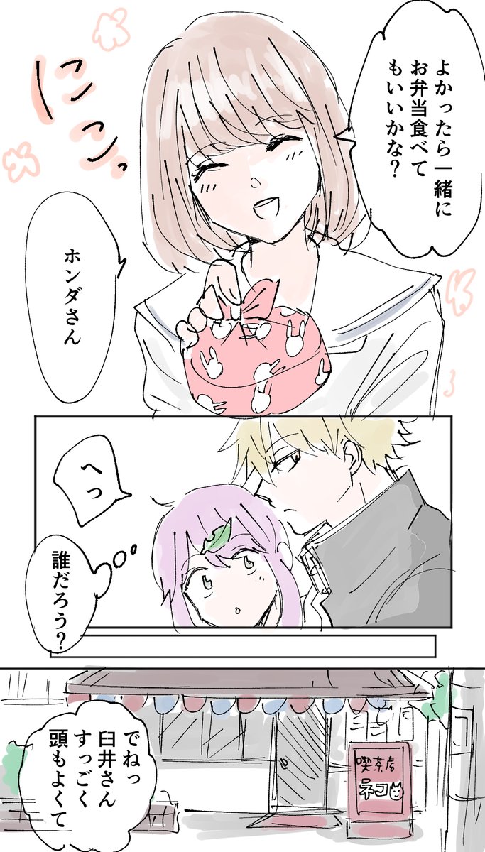 ひゃくねんびびっと@創作漫画 @100akinana タヌキとキツネが化けて高校生になる話です。 「ホンダトコンノ」 #創作漫画 #漫画が読めるハッシュタグ #漫画 『はじめてのオトモダチ』 https://t.co/34IqxGtbOt