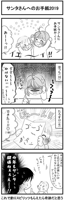 過去に子どもたちが書いた「サンタさんへの手紙」4コマ再掲です☺️