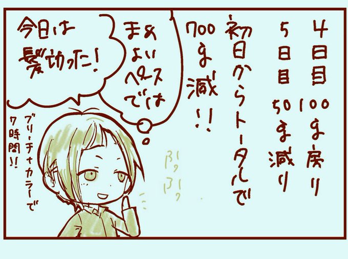 昨日の絵日記の続きを描いて4コマにしました。1日で400g減。このクオリティならスラスラ描けるかも。