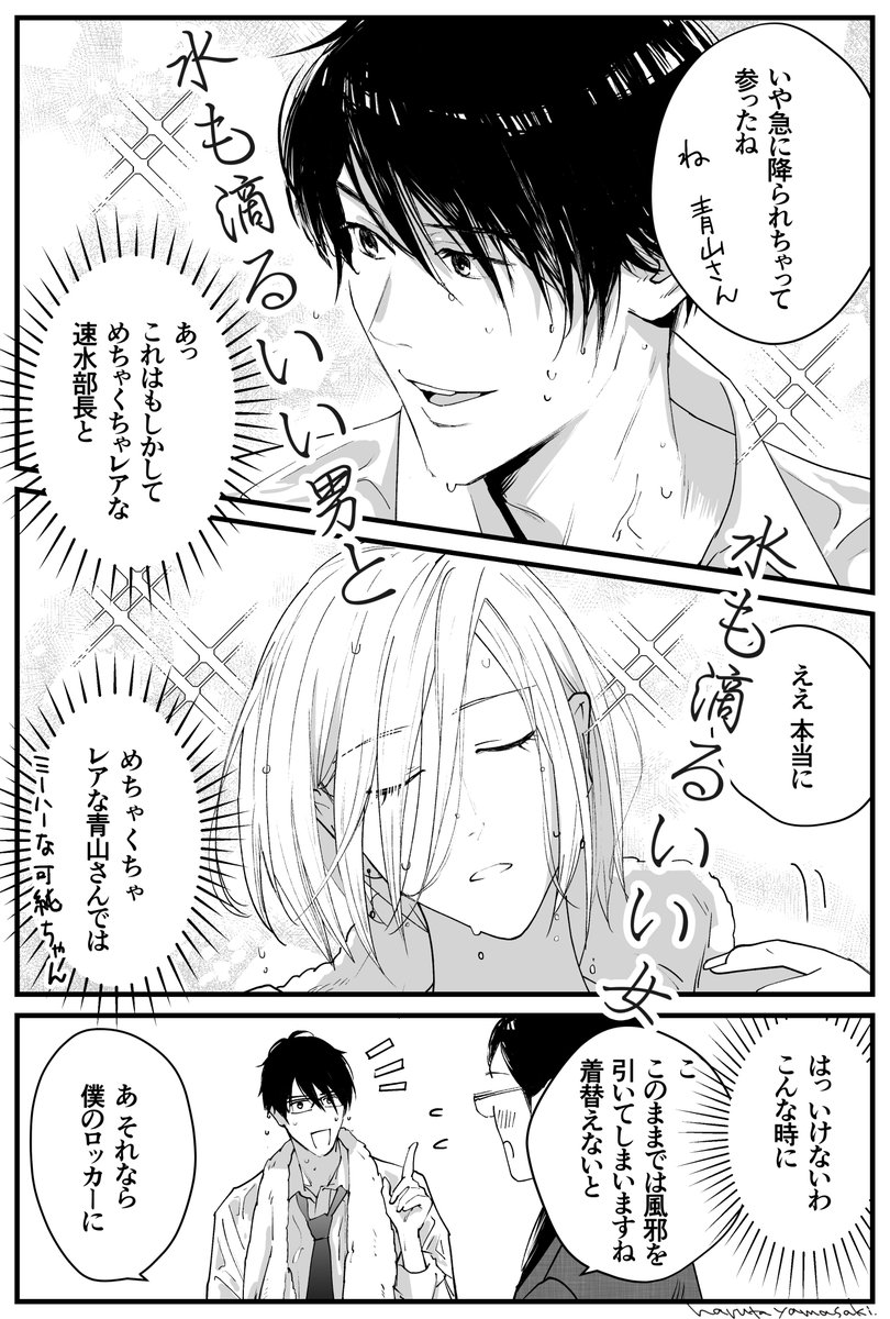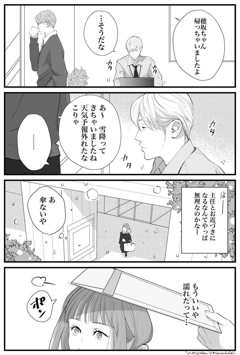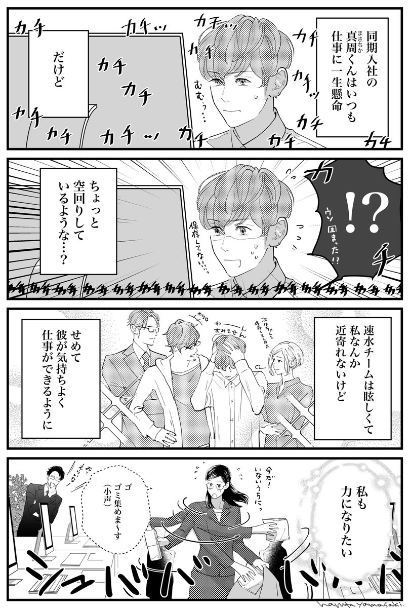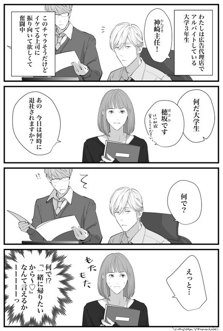 このお話は見た目は完璧なのにいつもどこか向けている速水部長を中心に、彼の部下でしっかり者の青山さんや安西くんたちが繰り広げるラブコメディです。たくさんの人に読んで欲しいです☺️ https://t.co/2BEuIu9Jg9