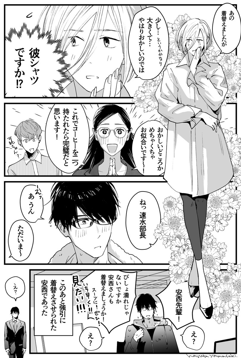 『うちの上司は見た目がいい3』の表紙を飾ったふたりのラブストーリーです。速水部長の部下の安西くんと、そのお隣に住む佐々木さんのラブストーリーです🥰 https://t.co/H1TXDEQdJj