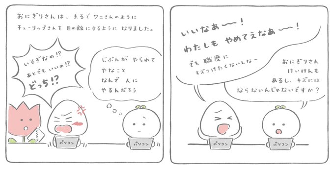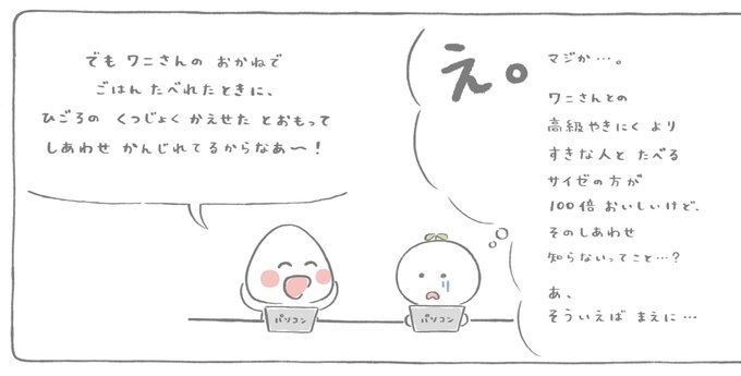 ゆるり ٩( 'ω' )و @mrkm___yr 『せなかを おしてくれた ひと』 ⑩おにぎりさん その3 だから🍙を責めれない #創作漫画 #漫画が読めるハッシュタグ https://t.co/wETldxFZhe