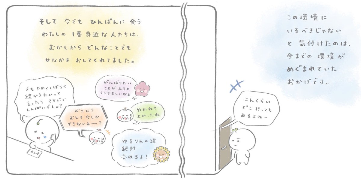 ゆるり ٩( 'ω' )و @mrkm___yr 『せなかを おしてくれた ひと』 ⑪いままでの 環境(1/2) 学校、部活、会社、血筋? どれか1つでもかぶってる人へ #創作漫画 #漫画が読めるハッシュタグ https://t.co/d36Zk4w29s