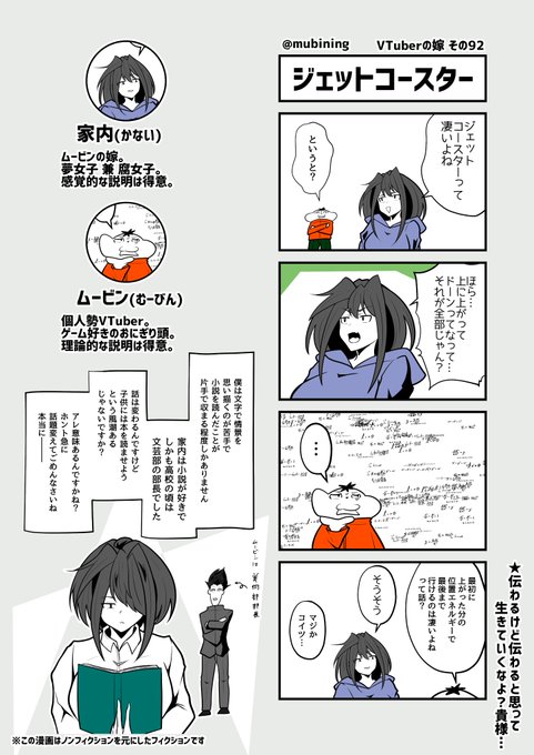 ジェットコースターを褒める家内を描いた日記漫画です。