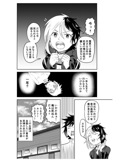 みなもん @remon_no_kao42 #漫画が読めるハッシュタグ #創作漫画 死のうとしたら死神に生かされた話 久しぶりに漫画書いたから、分かりにくい&読みにくかったらごめんねぇ。汗 https://t.co/lZwqIFpb8S
