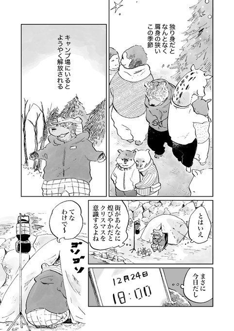 佐倉イサミ🐕「姫ばあちゃんとナイト」連載開始 @sakura_isami 会社員クマさんのわくわくクリスマスキャンプ(1/2) #漫画が読めるハッシュタグ https://t.co/BzYKqeAMKm