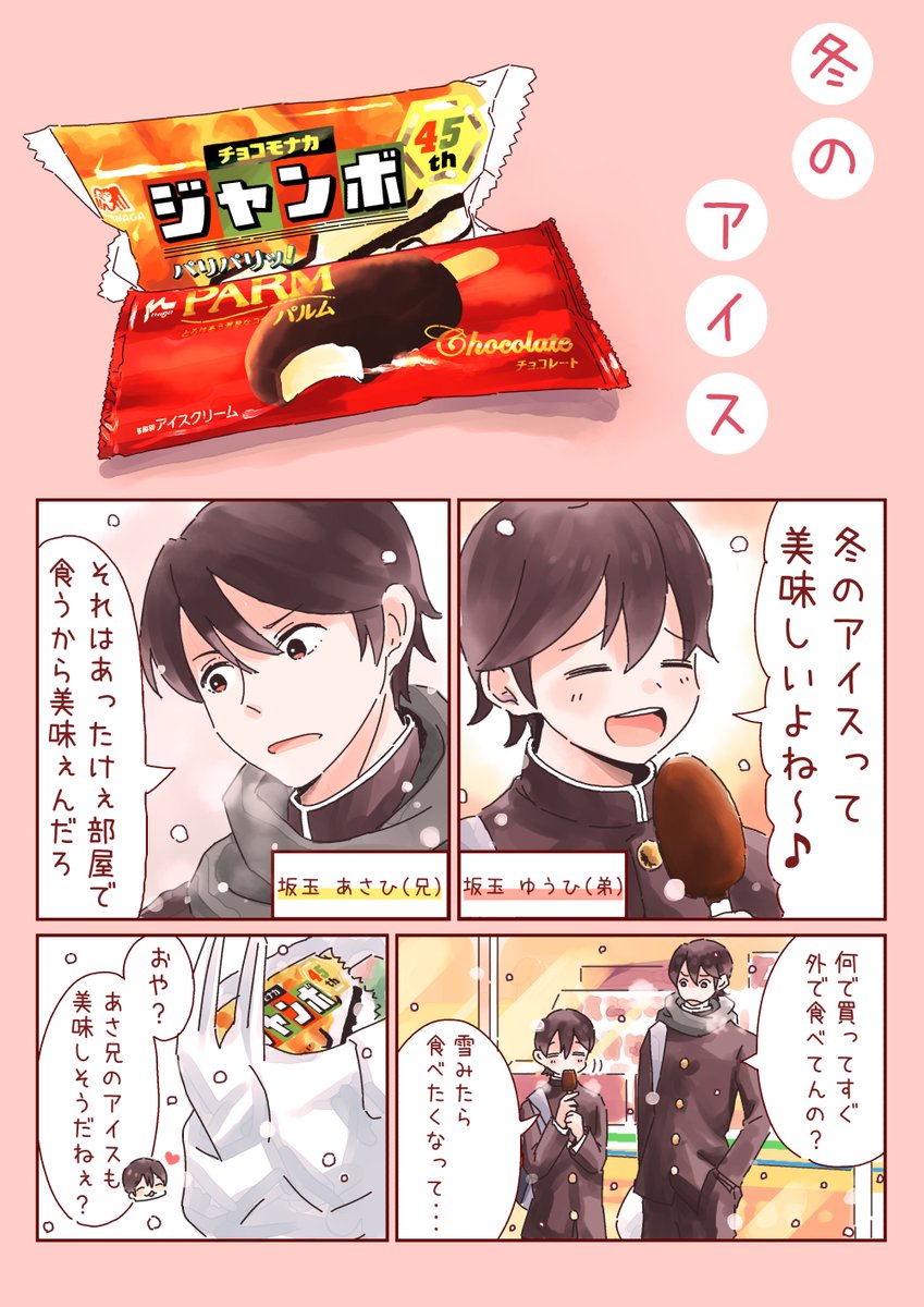 仲良し兄弟がコンビニのアイスを食べるだけの漫画。(再掲)#創作漫画 #漫画が読めるハッシュタグ https://t.co/8umqFoFm9S